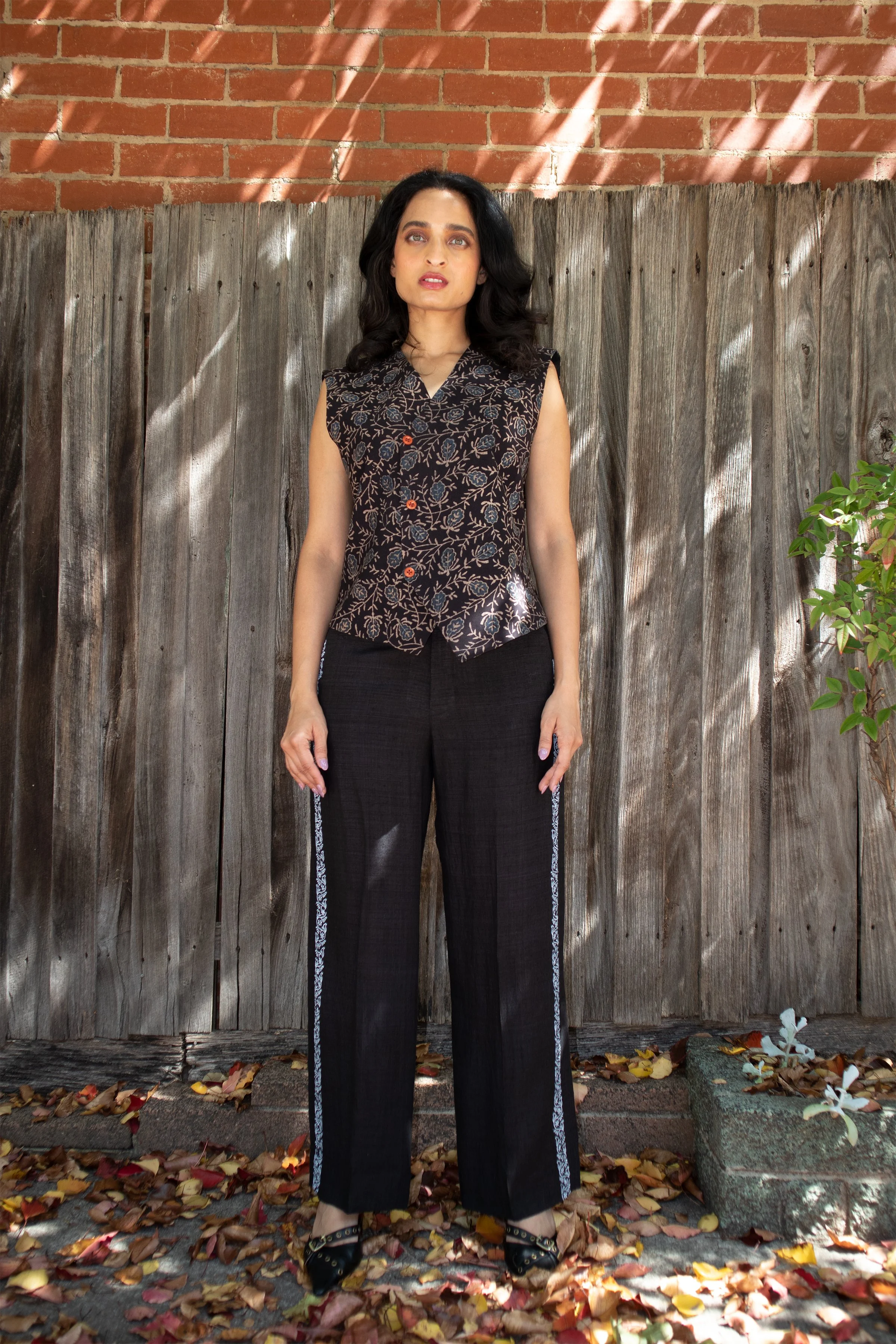 Crafted from 100% handspun, handwoven cotton, featuring hand block printing technique and wooden button closure.