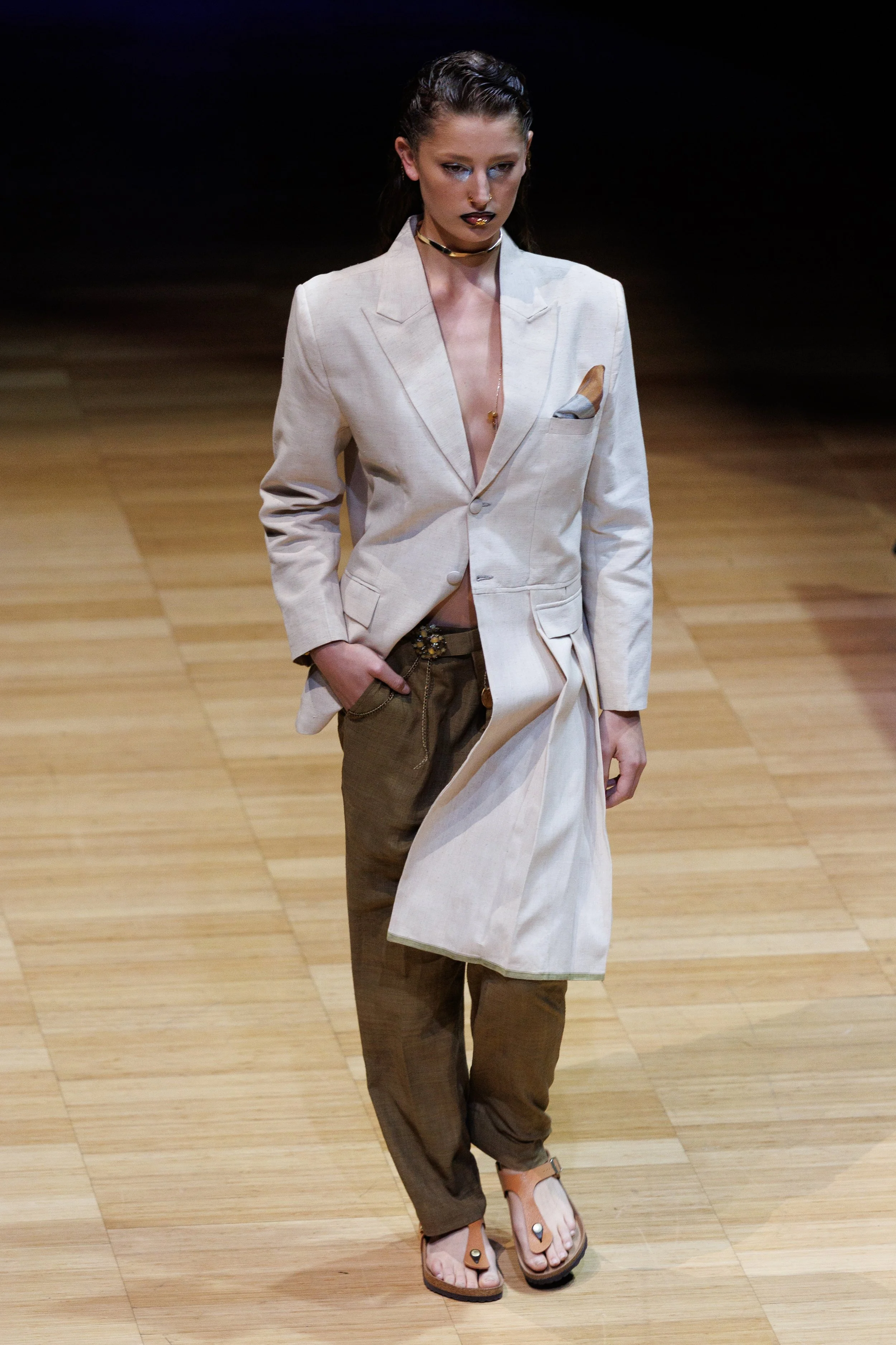 An expression of quiet opulence, the Ivory Kilt Blazer brings together heritage inspiration and contemporary refinement. Drawing from the ceremonial elegance of the Royal Guard bagpipers outside Buckingham Palace, the design reinterprets the distinctive kilt silhouette through a tailored lens, structured yet fluid, formal yet effortless.